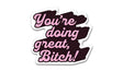 You're doing great, Bitch! Sticker is backordered and will ship as soon as it is back in stock.